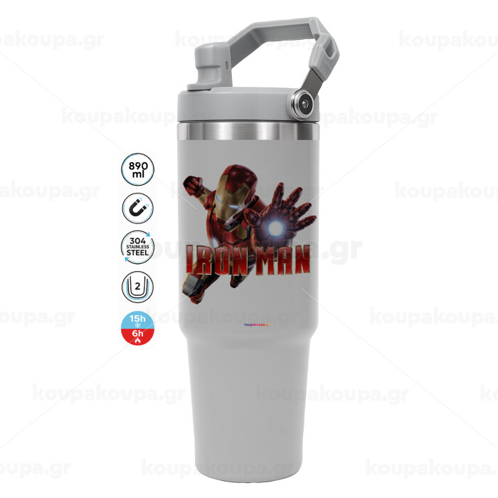 Ironman, GREY color, 890ml (30oz) stainless Steel Tumbler with Handle