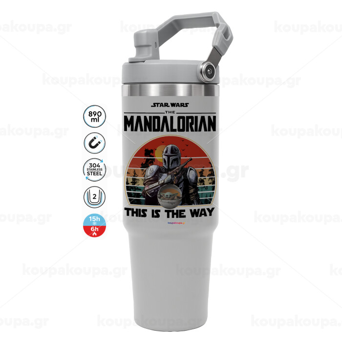 Mandalorian, GREY color, 890ml (30oz) stainless Steel Tumbler with Handle