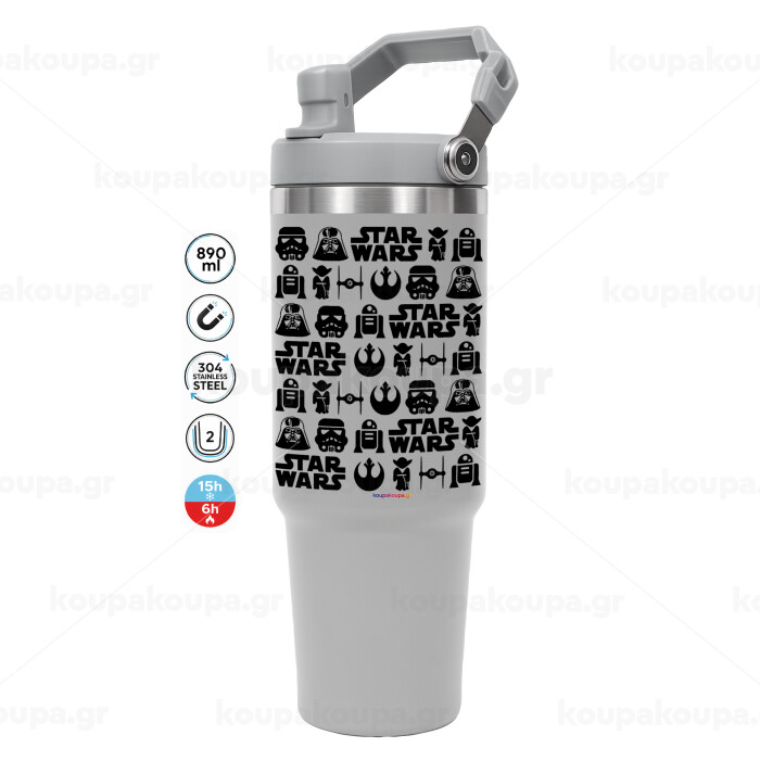 Star Wars Pattern, GREY color, 890ml (30oz) stainless Steel Tumbler with Handle
