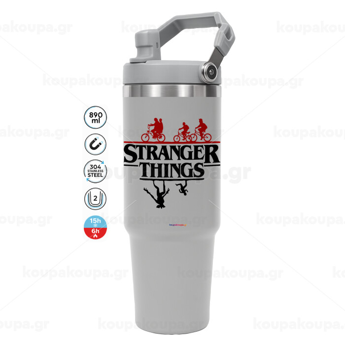 Stranger Things upside down, GREY color, 890ml (30oz) stainless Steel Tumbler with Handle