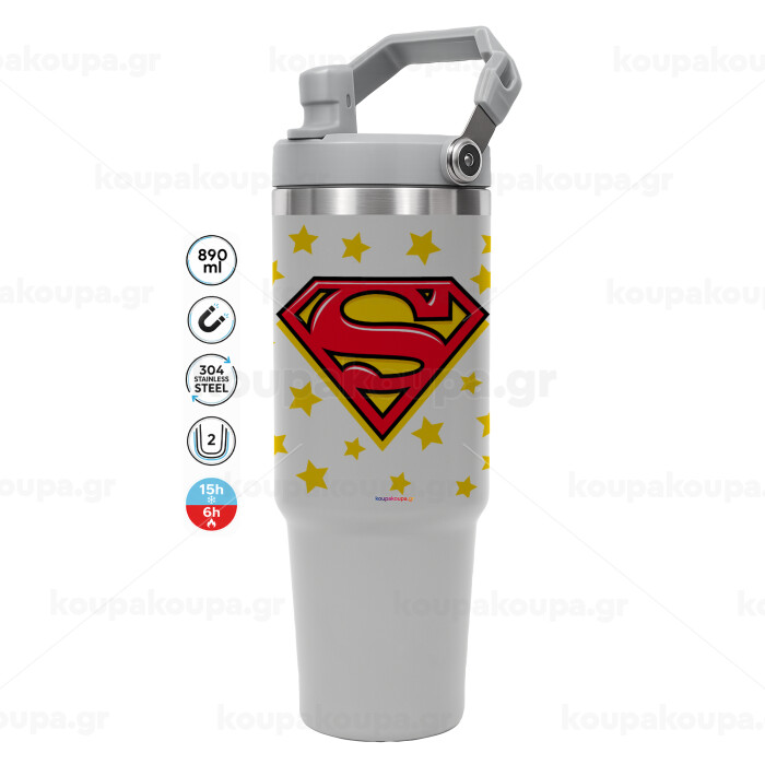 Superman Blue, GREY color, 890ml (30oz) stainless Steel Tumbler with Handle