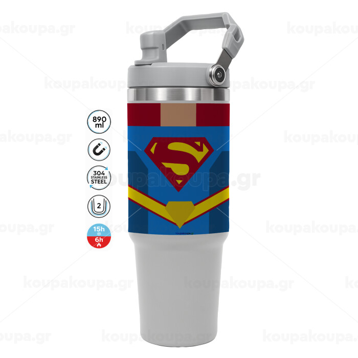 Superman flat, GREY color, 890ml (30oz) stainless Steel Tumbler with Handle