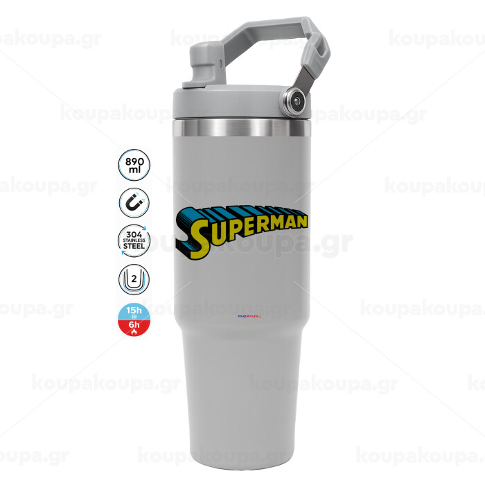 Superman vintage, GREY color, 890ml (30oz) stainless Steel Tumbler with Handle