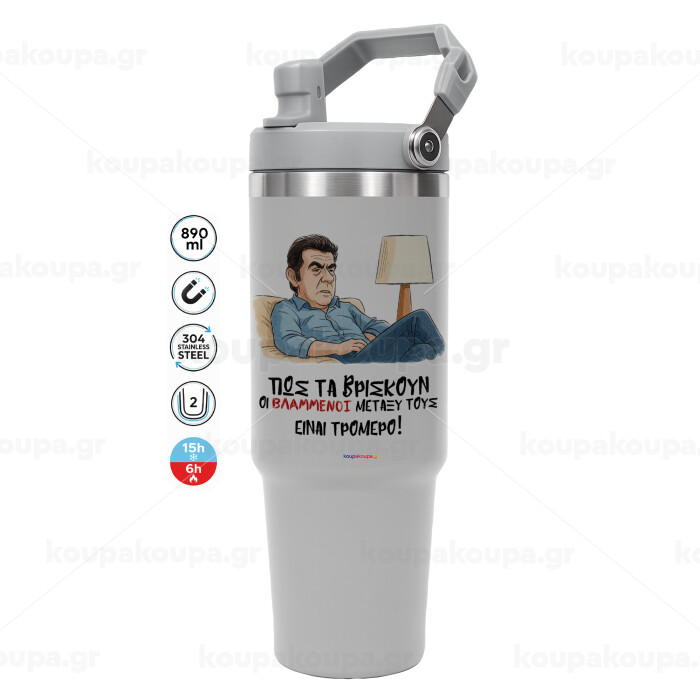 ΠΩΣ ΤΑ ΒΡΙΣΚΟΥΝ ΟΙ ΒΛΑ....ΝΟΙ ΜΕΤΑΞΥ ΤΟΥΣ, ΕΙΝΑΙ ΤΡΟΜΕΡΟ!!!, GREY color, 890ml (30oz) stainless Steel Tumbler with Handle