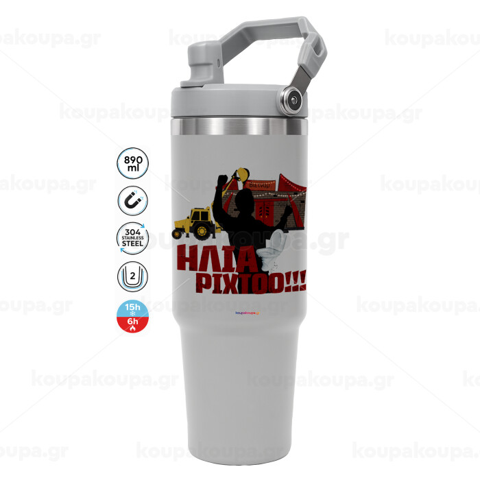 Ηλία ρίχτο!, GREY color, 890ml (30oz) stainless Steel Tumbler with Handle