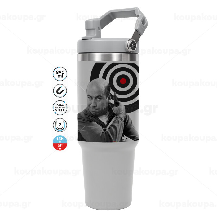 Θου Βου Φαλακρός Πράκτωρ, GREY color, 890ml (30oz) stainless Steel Tumbler with Handle