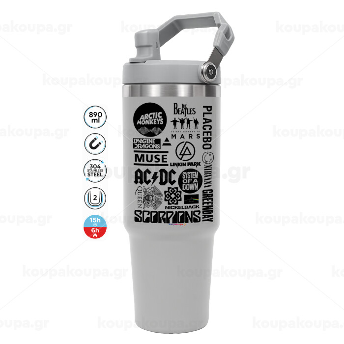 Best Rock Bands Collection, GREY color, 890ml (30oz) stainless Steel Tumbler with Handle