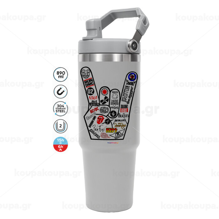 Best Rock Bands hand, GREY color, 890ml (30oz) stainless Steel Tumbler with Handle