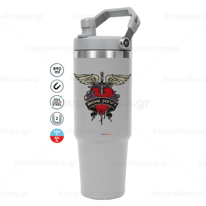 Bon Jovi, GREY color, 890ml (30oz) stainless Steel Tumbler with Handle