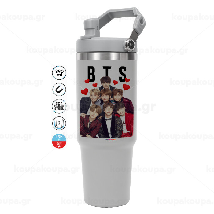 BTS hearts, GREY color, 890ml (30oz) stainless Steel Tumbler with Handle