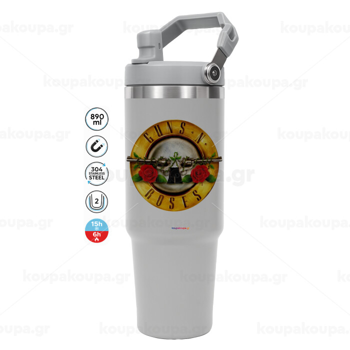 Guns N' Roses, GREY color, 890ml (30oz) stainless Steel Tumbler with Handle