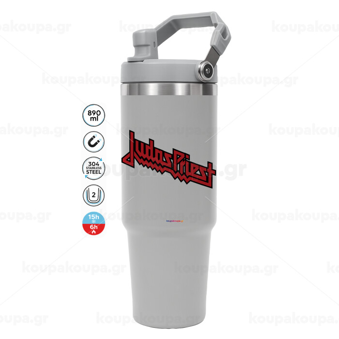 Judas Priest, GREY color, 890ml (30oz) stainless Steel Tumbler with Handle