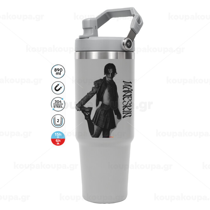 Maneskin Damiano David, GREY color, 890ml (30oz) stainless Steel Tumbler with Handle