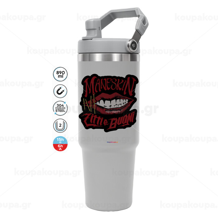 Maneskin lips, GREY color, 890ml (30oz) stainless Steel Tumbler with Handle