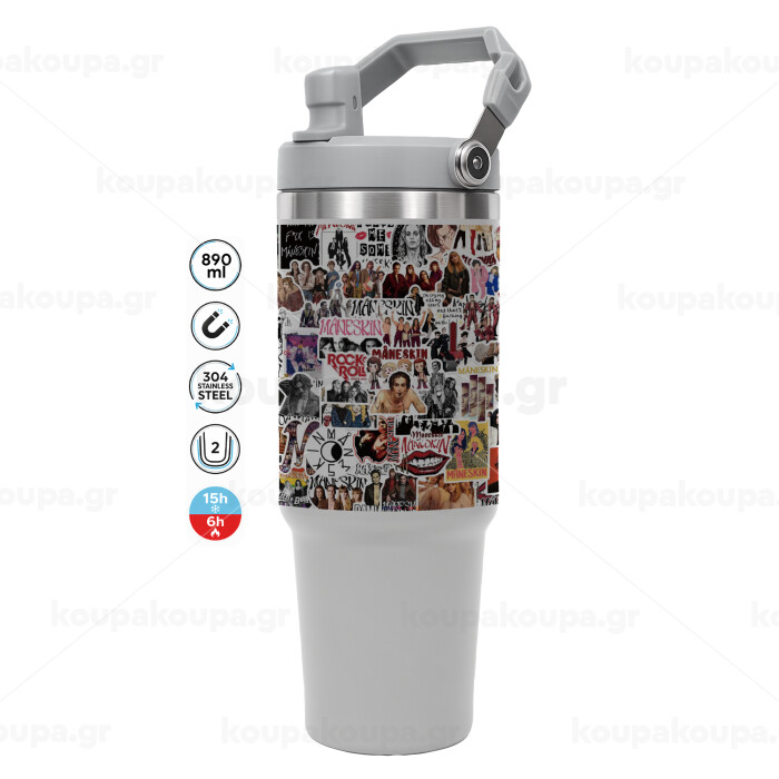 Maneskin stickers, GREY color, 890ml (30oz) stainless Steel Tumbler with Handle