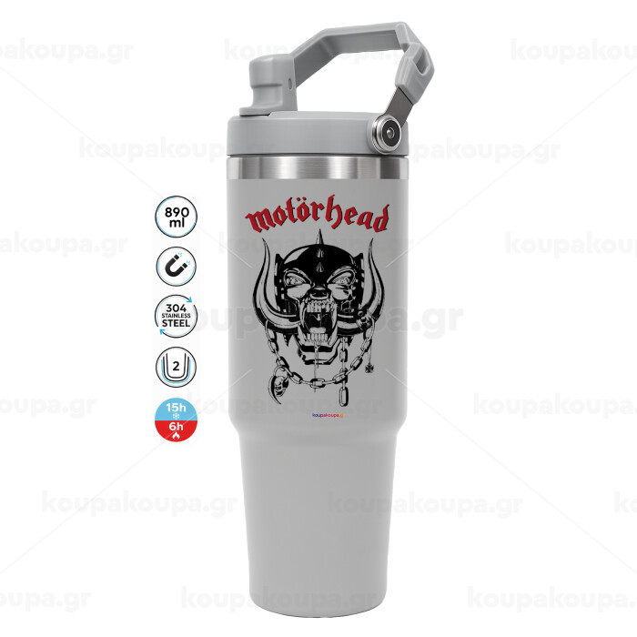 motorhead, GREY color, 890ml (30oz) stainless Steel Tumbler with Handle