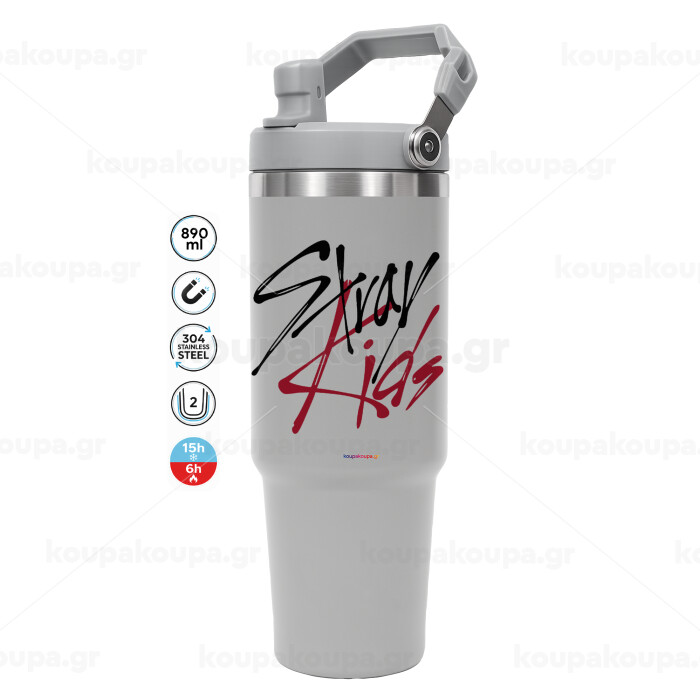 Stray Kids, GREY color, 890ml (30oz) stainless Steel Tumbler with Handle