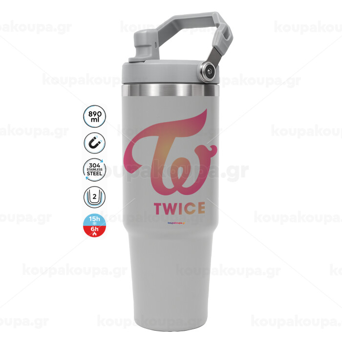 Twice, GREY color, 890ml (30oz) stainless Steel Tumbler with Handle