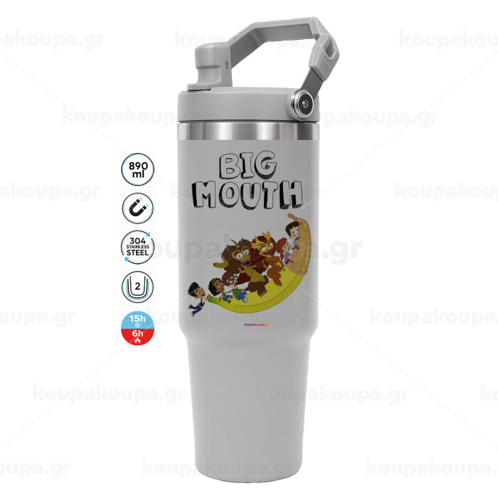 Big mouth, GREY color, 890ml (30oz) stainless Steel Tumbler with Handle