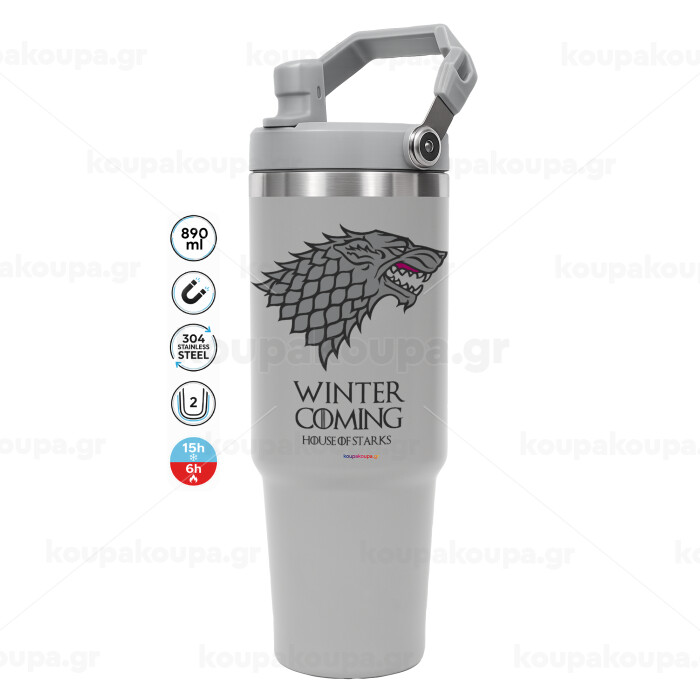 GOT House of Starks, winter coming, GREY color, 890ml (30oz) stainless Steel Tumbler with Handle