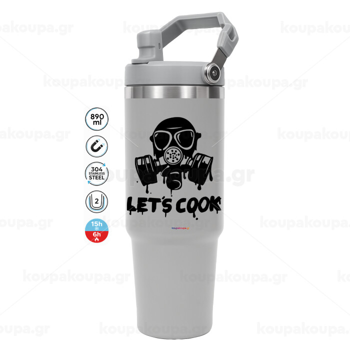 Let's cook mask, GREY color, 890ml (30oz) stainless Steel Tumbler with Handle