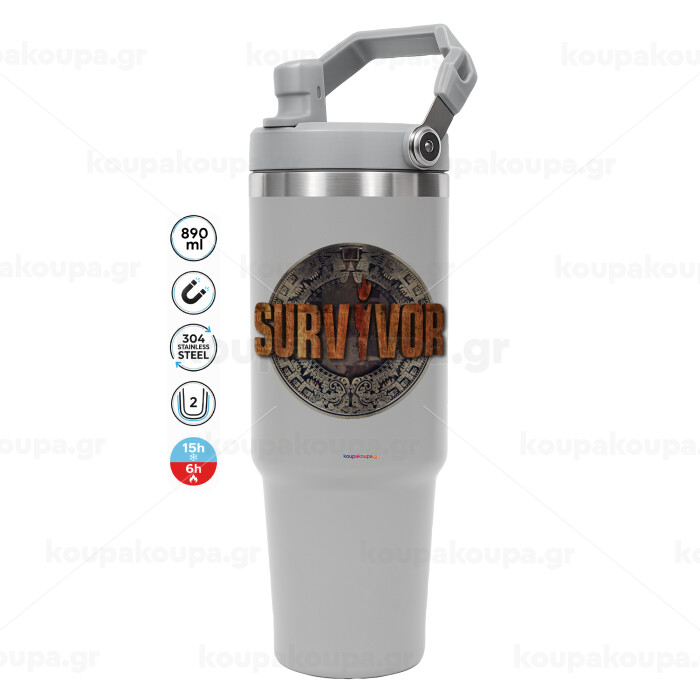 Survivor, GREY color, 890ml (30oz) stainless Steel Tumbler with Handle