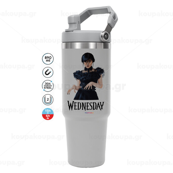 Wednesday Adams, dance with hands, GREY color, 890ml (30oz) stainless Steel Tumbler with Handle