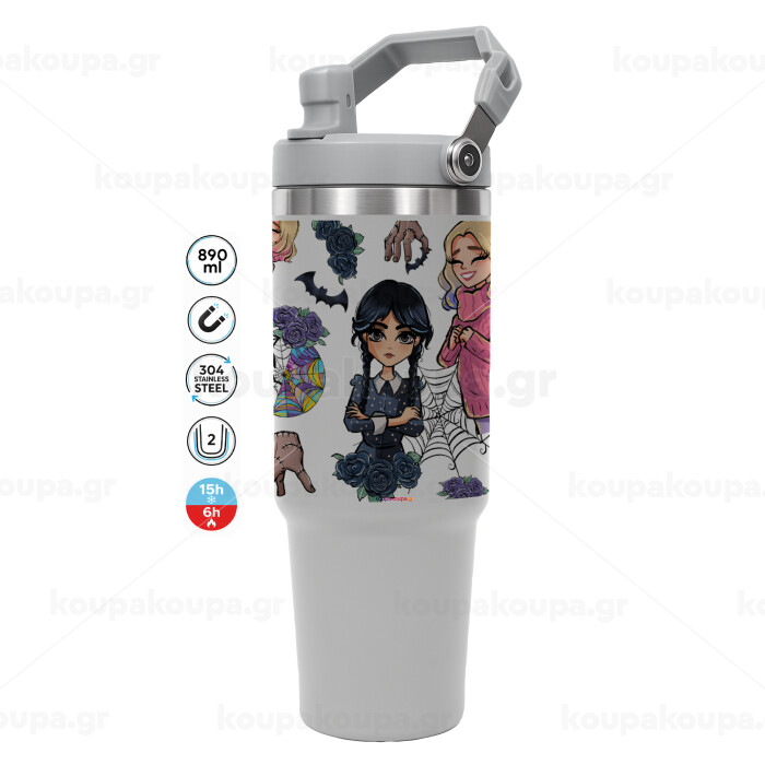 Wednesday and Enid Sinclair, GREY color, 890ml (30oz) stainless Steel Tumbler with Handle