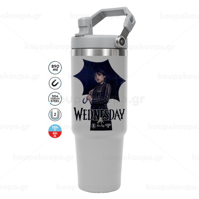 Wednesday rain, GREY color, 890ml (30oz) stainless Steel Tumbler with Handle