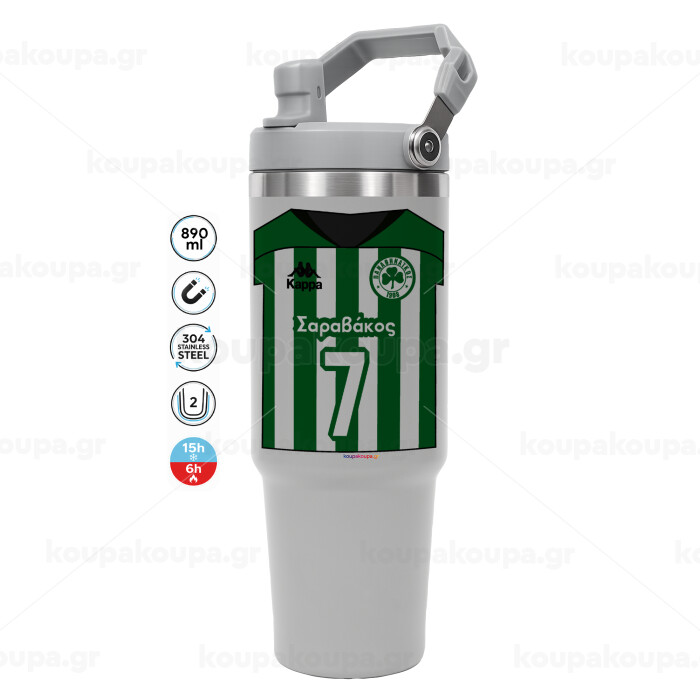 Παναθηναϊκός εμφάνιση, GREY color, 890ml (30oz) stainless Steel Tumbler with Handle