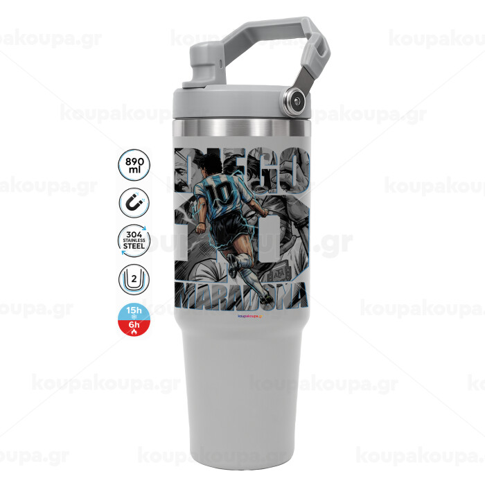 Diego Maradona (Ντιέγκο Μαραντόνα), GREY color, 890ml (30oz) stainless Steel Tumbler with Handle