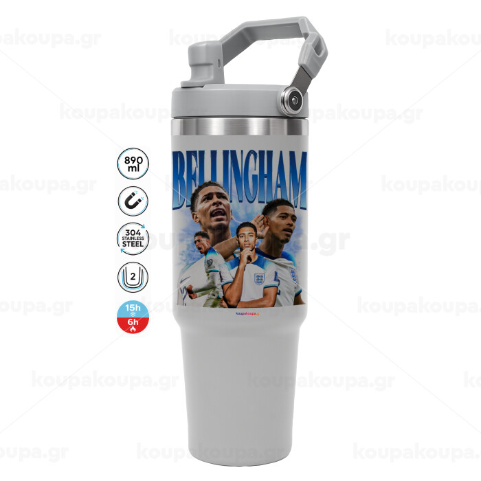 Jude Bellingham, GREY color, 890ml (30oz) stainless Steel Tumbler with Handle