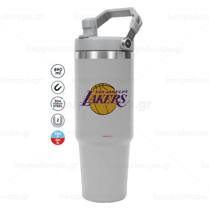 Lakers, GREY color, 890ml (30oz) stainless Steel Tumbler with Handle
