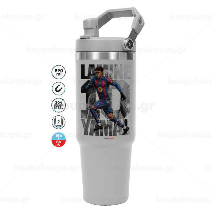 Lamine Yamal (Λαμίν Γιαμάλ), GREY color, 890ml (30oz) stainless Steel Tumbler with Handle