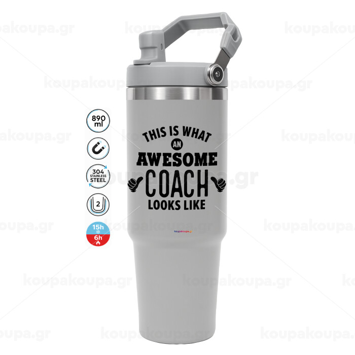 This is what an awesome COACH looks like!, GREY color, 890ml (30oz) stainless Steel Tumbler with Handle