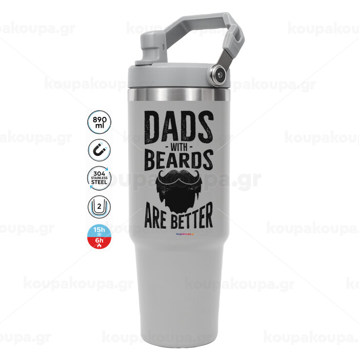 Dad's with beards are better, GREY color, 890ml (30oz) stainless Steel Tumbler with Handle