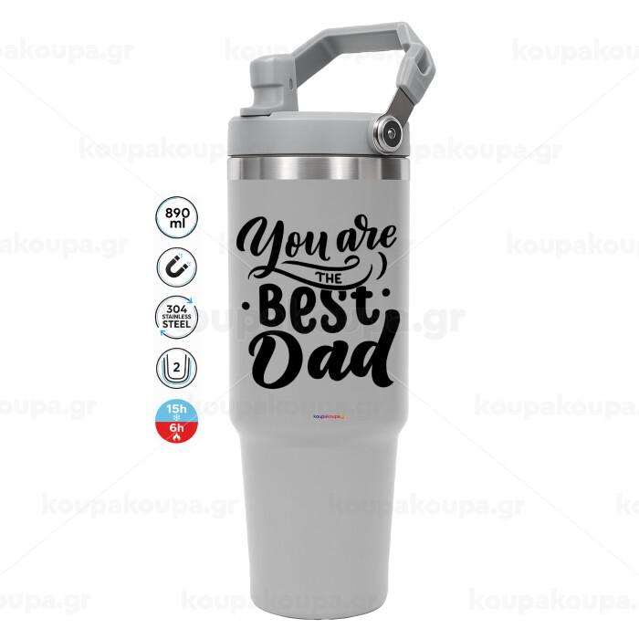You are the best Dad, GREY color, 890ml (30oz) stainless Steel Tumbler with Handle