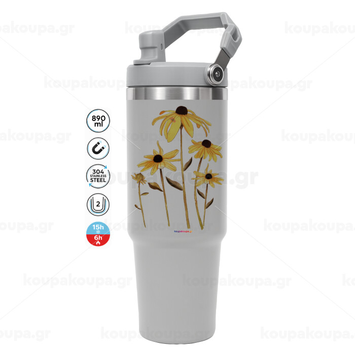 Daisies flower, GREY Travel Tumbler with Handle 890ml