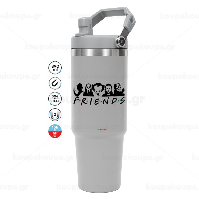 Halloween Friends, GREY color, 890ml (30oz) stainless Steel Tumbler with Handle