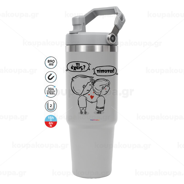 Τι έχεις? Τίποτα!, GREY color, 890ml (30oz) stainless Steel Tumbler with Handle