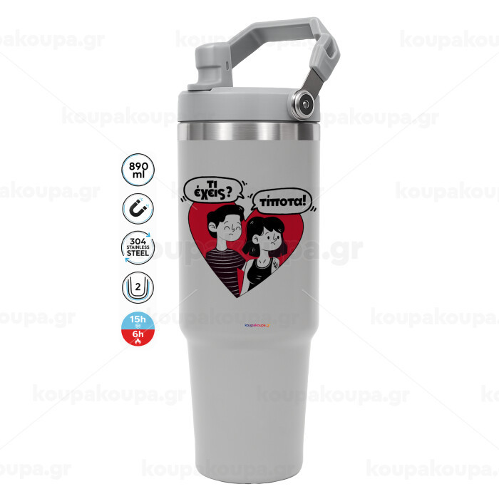 Τι έχεις? Τίποτα!, GREY color, 890ml (30oz) stainless Steel Tumbler with Handle