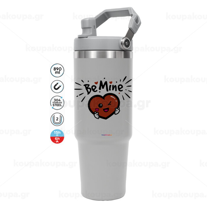 Be mine!, GREY color, 890ml (30oz) stainless Steel Tumbler with Handle