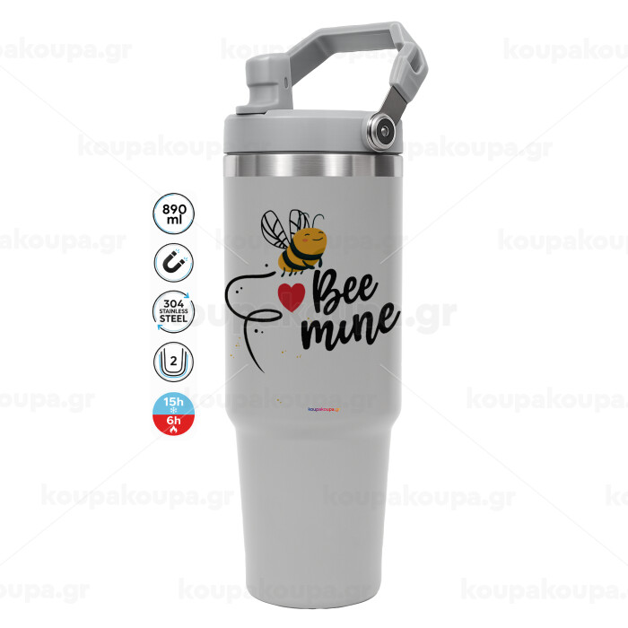 Bee mine!!!, GREY color, 890ml (30oz) stainless Steel Tumbler with Handle