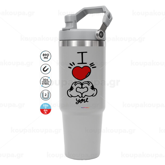 comics hands love, GREY color, 890ml (30oz) stainless Steel Tumbler with Handle