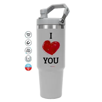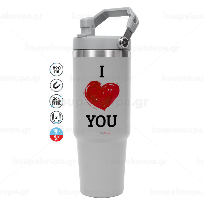 I Love You, GREY color, 890ml (30oz) stainless Steel Tumbler with Handle