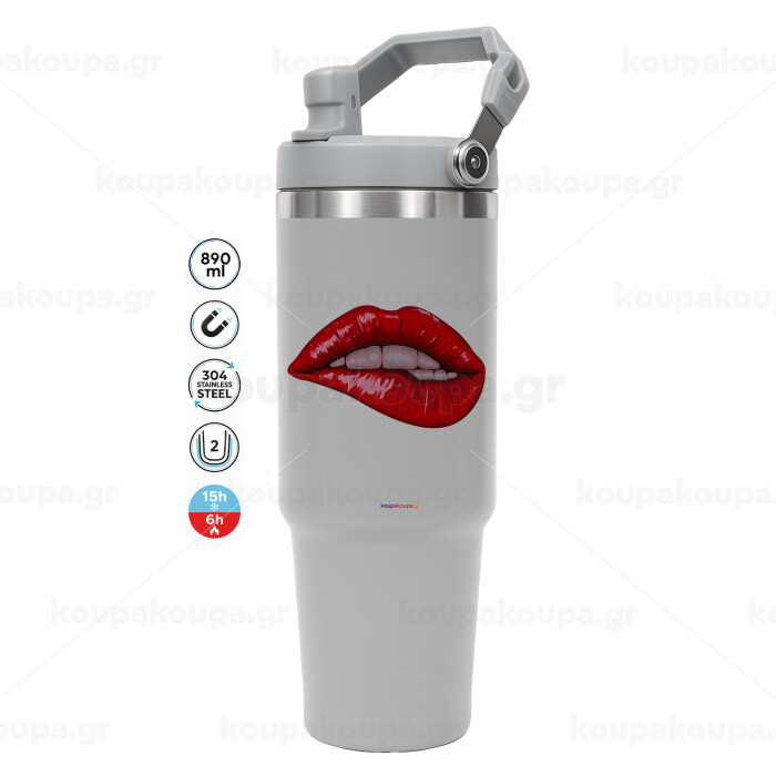 Lips, GREY color, 890ml (30oz) stainless Steel Tumbler with Handle