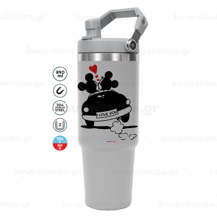 Love Car, GREY color, 890ml (30oz) stainless Steel Tumbler with Handle