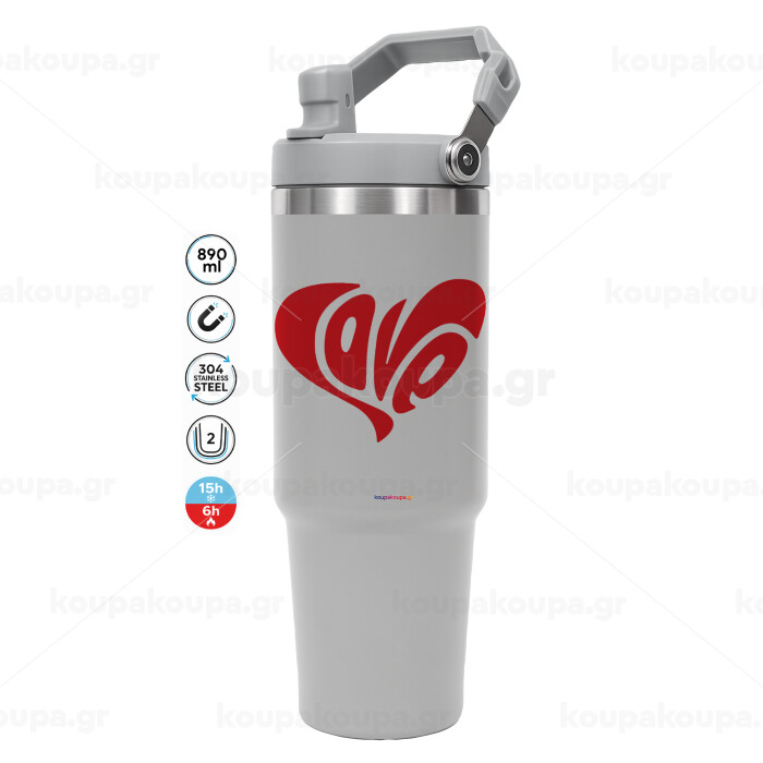 Love, GREY color, 890ml (30oz) stainless Steel Tumbler with Handle