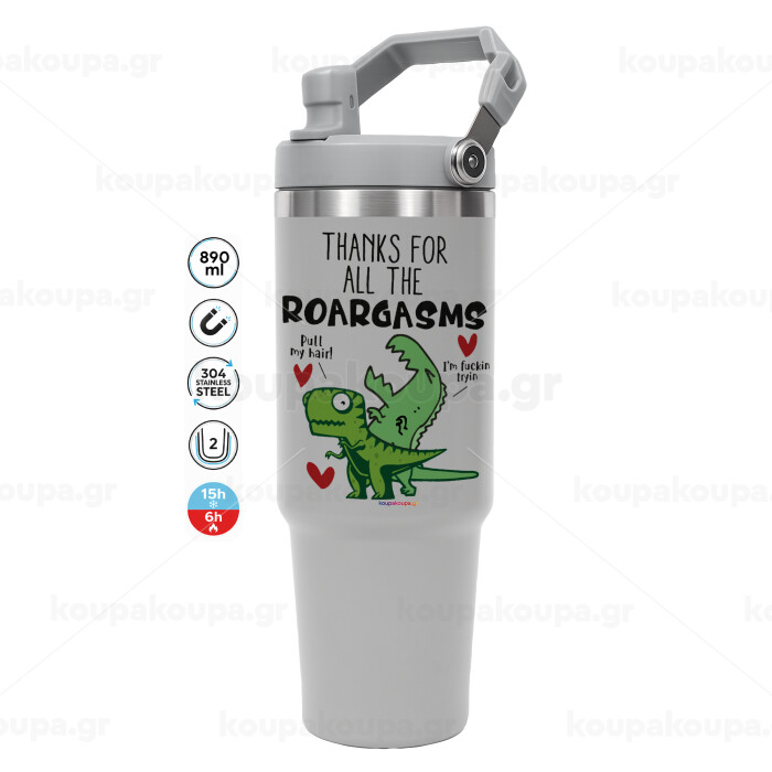 Thanks for all the ROARGASMS, GREY color, 890ml (30oz) stainless Steel Tumbler with Handle