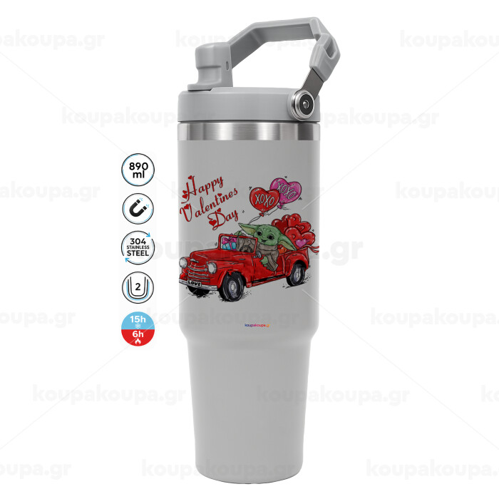 Yoda, happy valentines day (xoxo), GREY color, 890ml (30oz) stainless Steel Tumbler with Handle